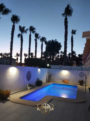 Luxury Detached Villa located in Villamartin.Discover the perfect blend of luxury and comfort in this stunning detached villa located in a well-established community near the renowned Villamartin golf course. This beautifully reformed home boasts high-quality finishes throughout, ensuring a stylish yet cozy atmosphere. Enjoy the convenience of double-glazing windows, mosquito blinds, and air-conditioning for year-round comfort. The ground floor features a welcoming entrance hallway leading to a spacious lounge and open-plan dining area, alongside an independent kitchen perfect for culinary enthusiasts.Step outside to your private oasis, complete with a swimming pool and a charming garden area ideal for entertaining. The covered terrace provides shade for those warm summer days, while the BBQ area invites gatherings with family and friends. With three well-sized bedrooms, including a master suite with an en-suite bathroom on the first floor, this villa offers ample space for relaxation. The large private Solarium overlooks the communal pool, creating a serene backdrop for your morning coffee or evening sunset.This property also features built-in wardrobes, ceiling fans, and a large storeroom that can easily be converted into an additional bedroom. The mature garden is easily maintained, allowing you to spend more time enjoying your surroundings. With several terrace areas at both the front and rear of the property, there’s no shortage of outdoor space to unwind. Don't miss out on this exceptional opportunity to own a slice of paradise in Villamartin.Community Fees are 849 Euros Per year and the Suma is 348 Euros per year.